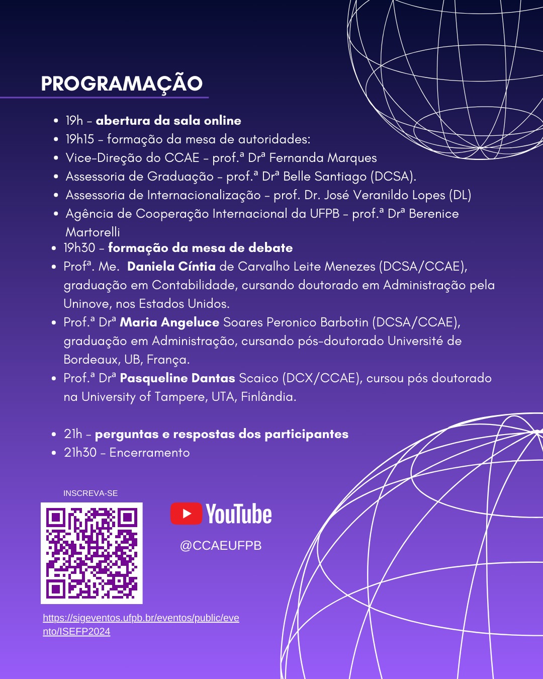 PROGRAMAÇÃO EVENTO INTERNACIONALIZAÇÃO CCAE