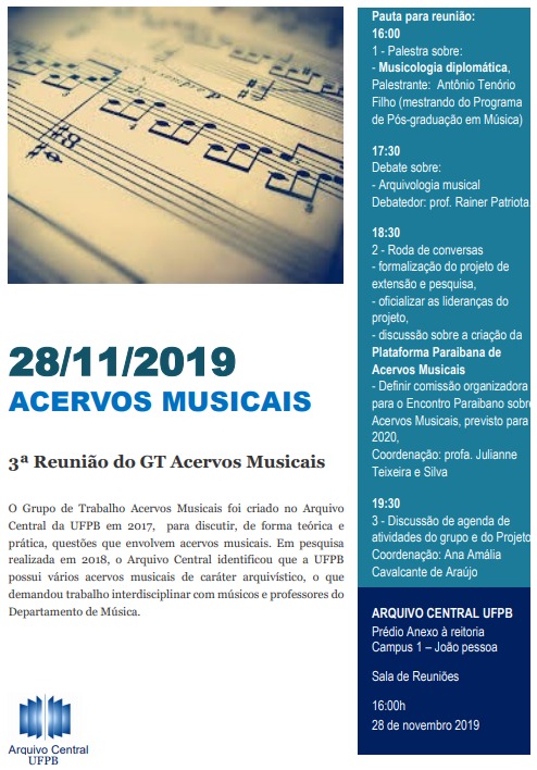 | 28/11/2019 | Convite: 3ª Reunião do GT Acervos Musicais |