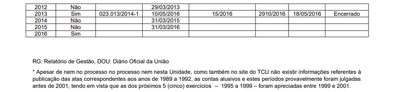 Referente a solicitação de informações sobre prestação de contas ao TCU realizada pelo e-sic que estão distribuídas através dos processos nº 23074.002919/2017-26 e nº 23074.085365/2018-75