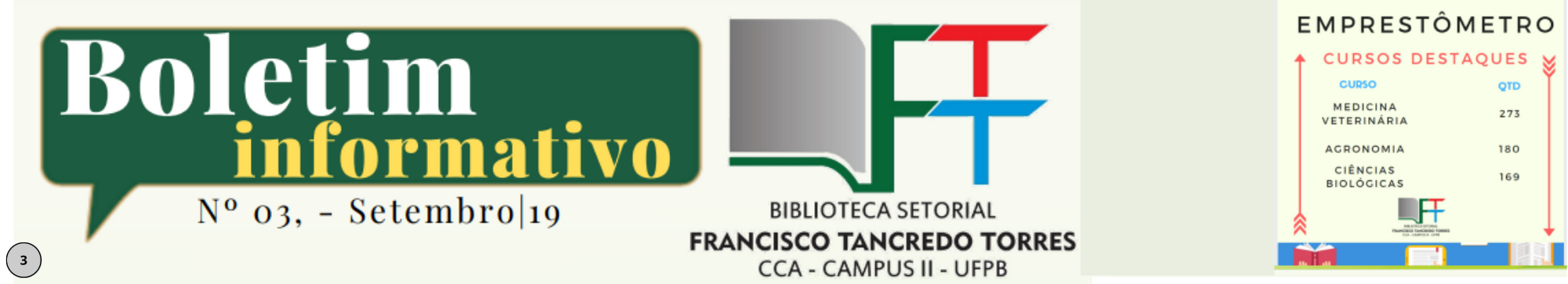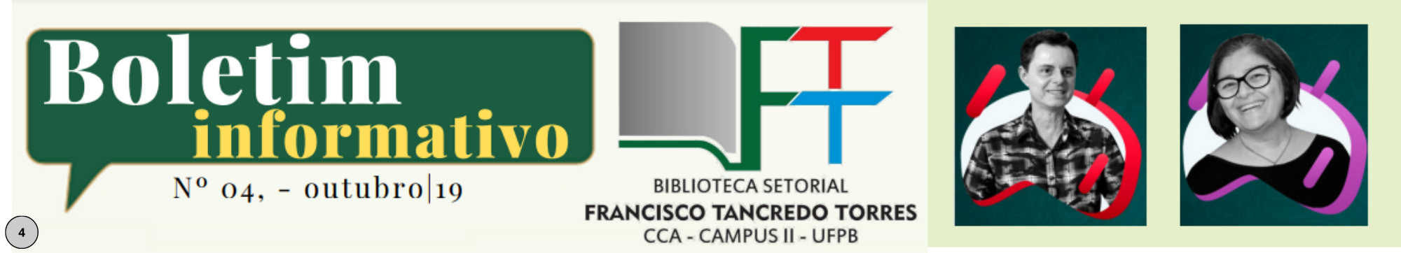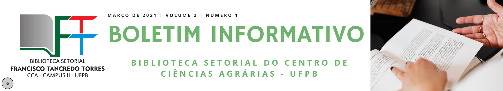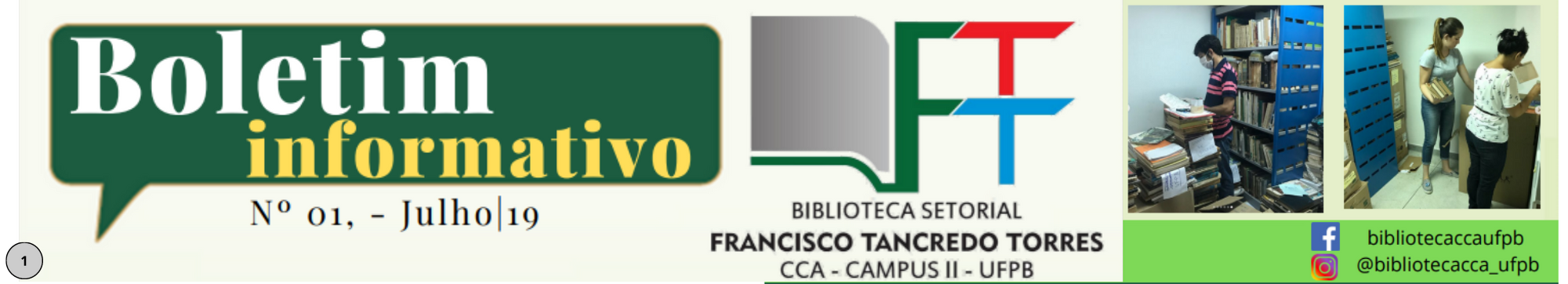 Aqui você encontra todos os Boletins Informativos produzidos pela Biblioteca Setorial Francisco Tancredo Torres desde 2019, em 2020 houve um descontinuação, retornando em 2021. A partir de 2023 o Boletim Informativo passou a ser hospedado no Repositório Institucional da UFPB. No ano de 2024 não houve produção do Boletim, retornando as publicações a partir de 2025. Clique nas imagens de cada número e tenha acesso a publicação.