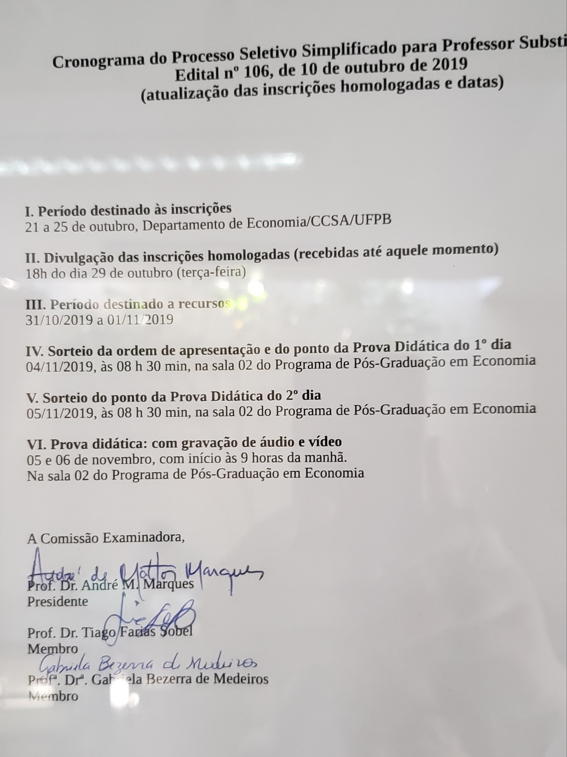 Edital nº 106/2019 - Processo Seletivo Simplificado para Professor Substituto - Departamento de Economia