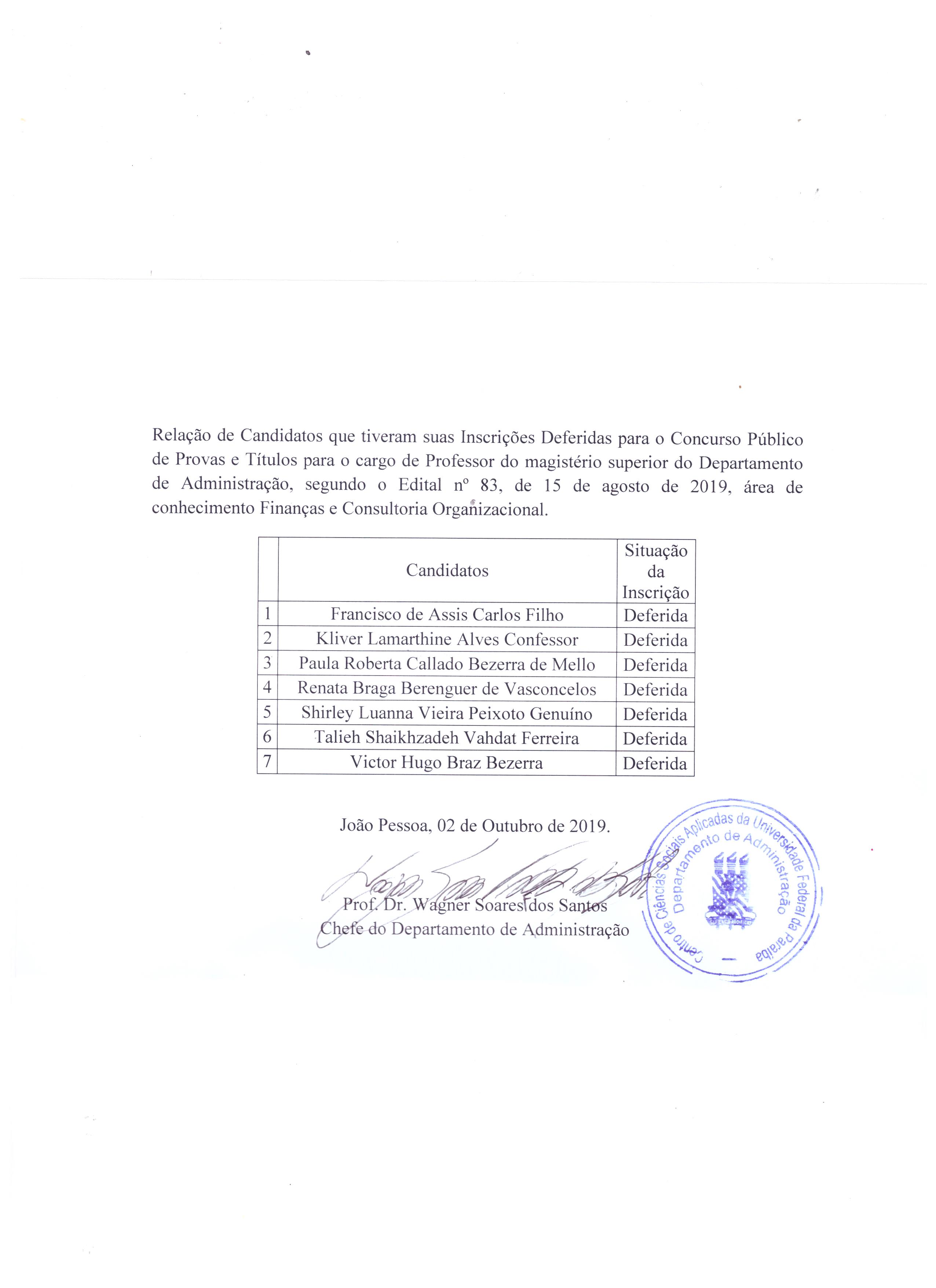 | Resultado do Deferimento das Inscrições - Edital nº 83/2019 | Link |