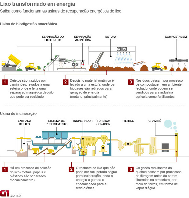 Como funciona a transformação de lixo em energia? clique aqui, veja o passo-a-passo e entenda a diferença entre uma usina de biodigestão anaeróbica e uma usina de incineração.