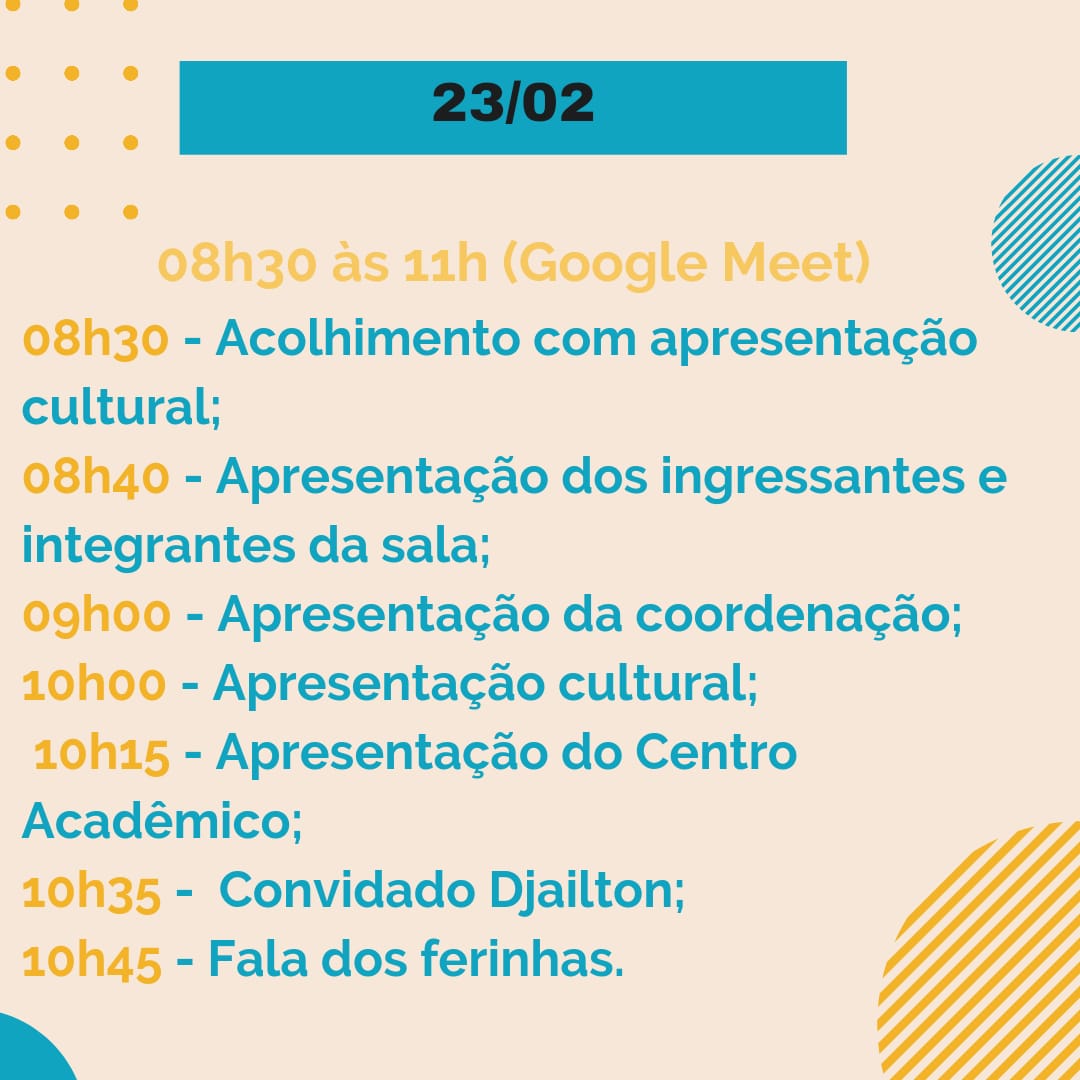 Confira a Programação que será conduzida pelo Centro Acadêmico Carmen Teresa Costa