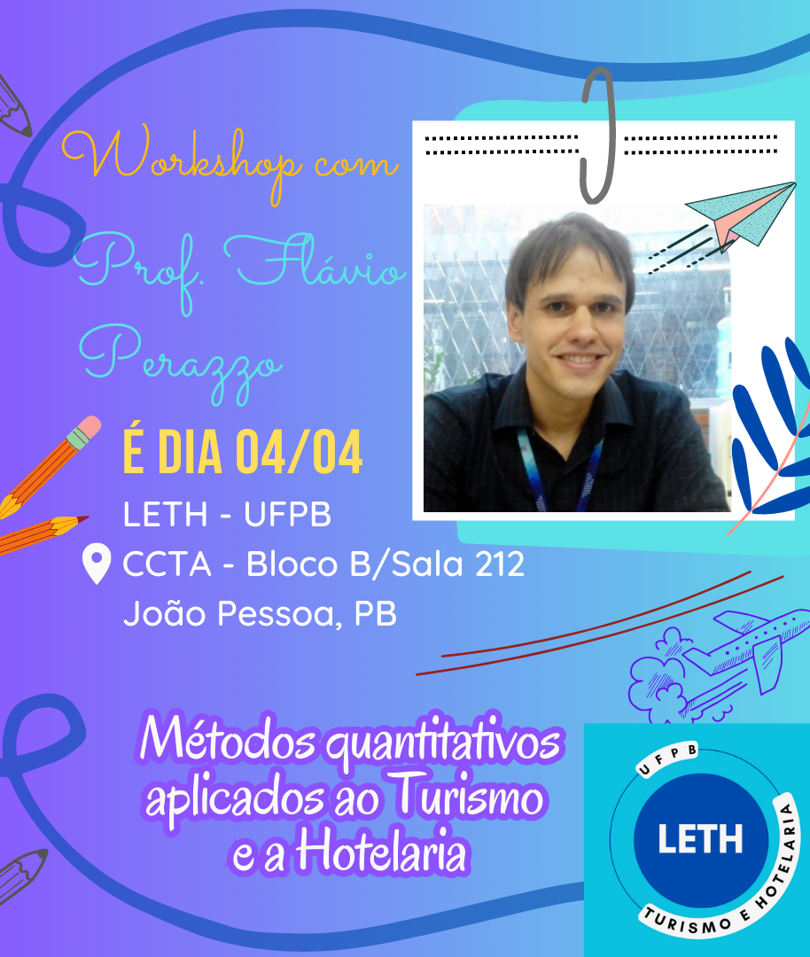 O Professor Dr. Flávio Perazzo Barbosa Mota, do Departamento de Gestão Pública, ministrará o Workshop métodos quantitativos aplicados ao Turismo e a Hotelaria, no CCTA/UFPB.