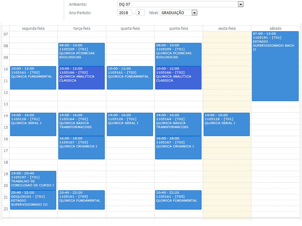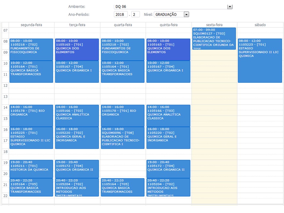 - QUADRO DE HORÁRIOS E OCUPAÇÕES DAS SALAS e LABORATÓRIOS DE ENSINO DO DQ -