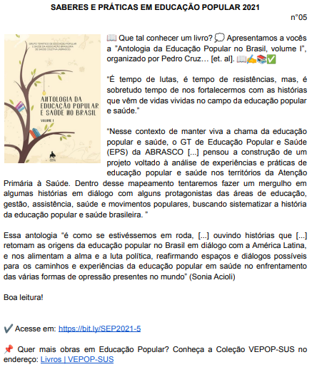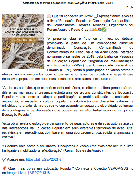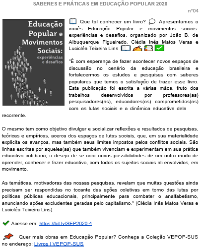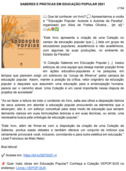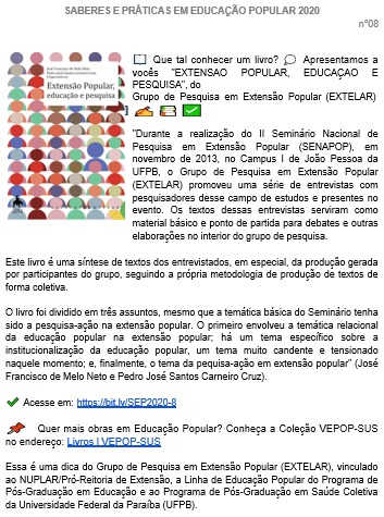 Conjunto de livros com resumos sobre as publicações relacionadas ao tema da Educação Popular (clique na imagem do livro para acessar)