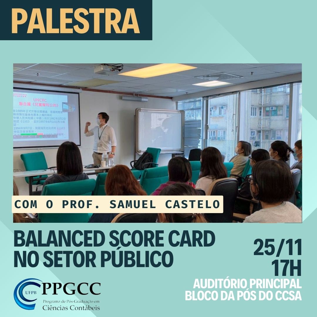 O Programa de Pós- Graduação em Ciências Contábeis realiza a palestra: Balanced Scored Card No Setor Público, a ser ministrada pelo Professor Samuel Castelo.