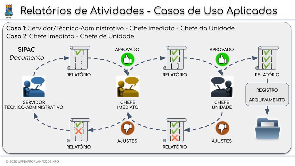Fluxo de entrega, analise, ajustes, aprovação, registro e arquivamento do relatório de atividades dos servidores da PROPLAN.
