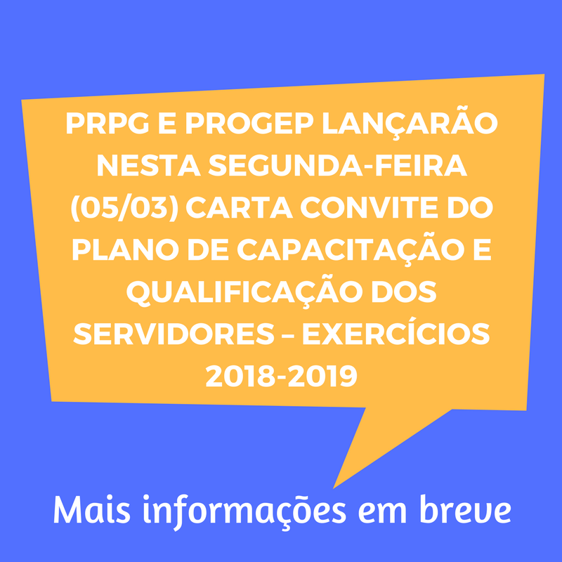 PRPG E PROGEP LANÇARÃO NESTA SEGUNDA-FEIRA (05/03) CARTA CONVITE DO PLANO DE CAPACITAÇÃO E QUALIFICAÇÃO DOS SERVIDORES – EXERCÍCIOS 2018-2019